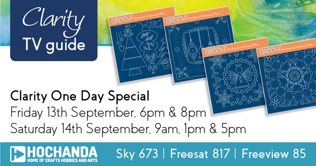This week’s One Day Special sees the launch of our brand new Christmas Embroidery Groovi Plates, designed by Tina Cox herself. There are four designs in the collection including Baubles, Angel, Christmas Tree and Star. The One Day Special bundle includes all four Plates plus needles, thread and black parchment! Tune in as Tina & Paul showcase these innovative designs.