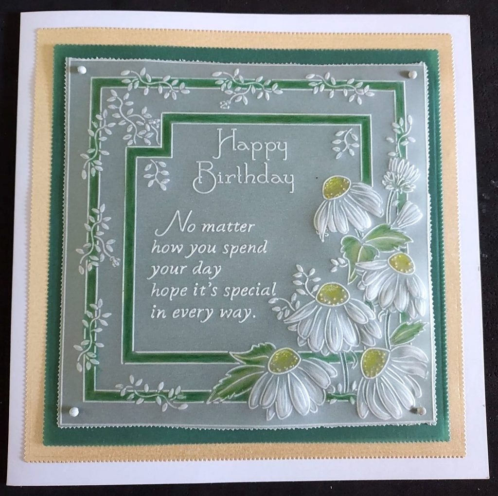 Good morning Grace, another great selection of cards, love all the different ways that the stamps & plates are used. Have a lovely weekend catching up with family & I will check in tomorrow to see what the DT have lined up for us this week xx