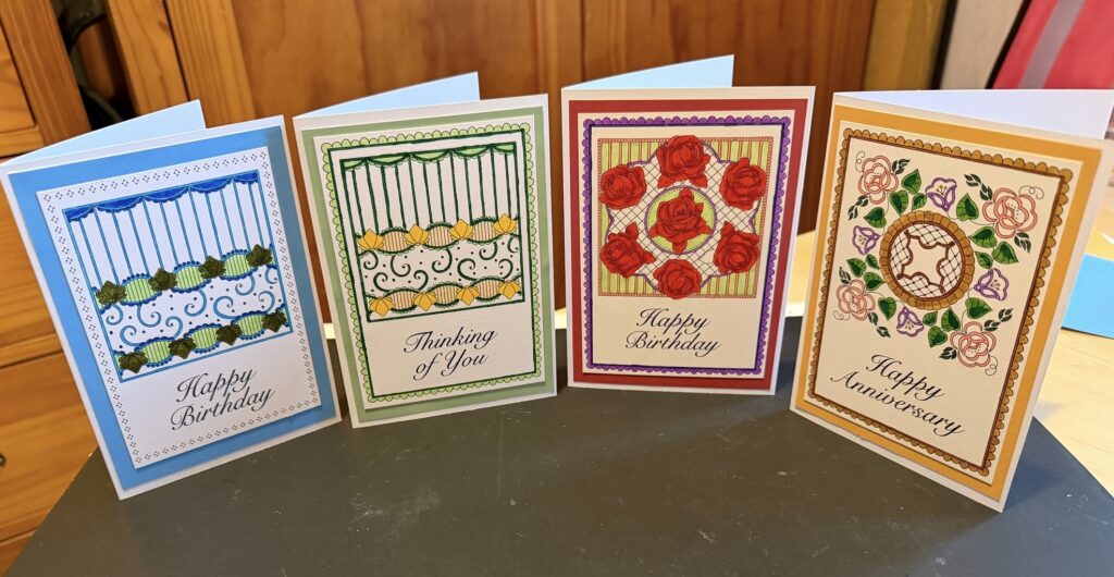 I’m not savvy enough on the computer to do any of the social media platforms so sadly you will not see any of my work. However hubby has bought me a modern computer and hopefully he will reactivate our web site and show me how to upload photos of my work.